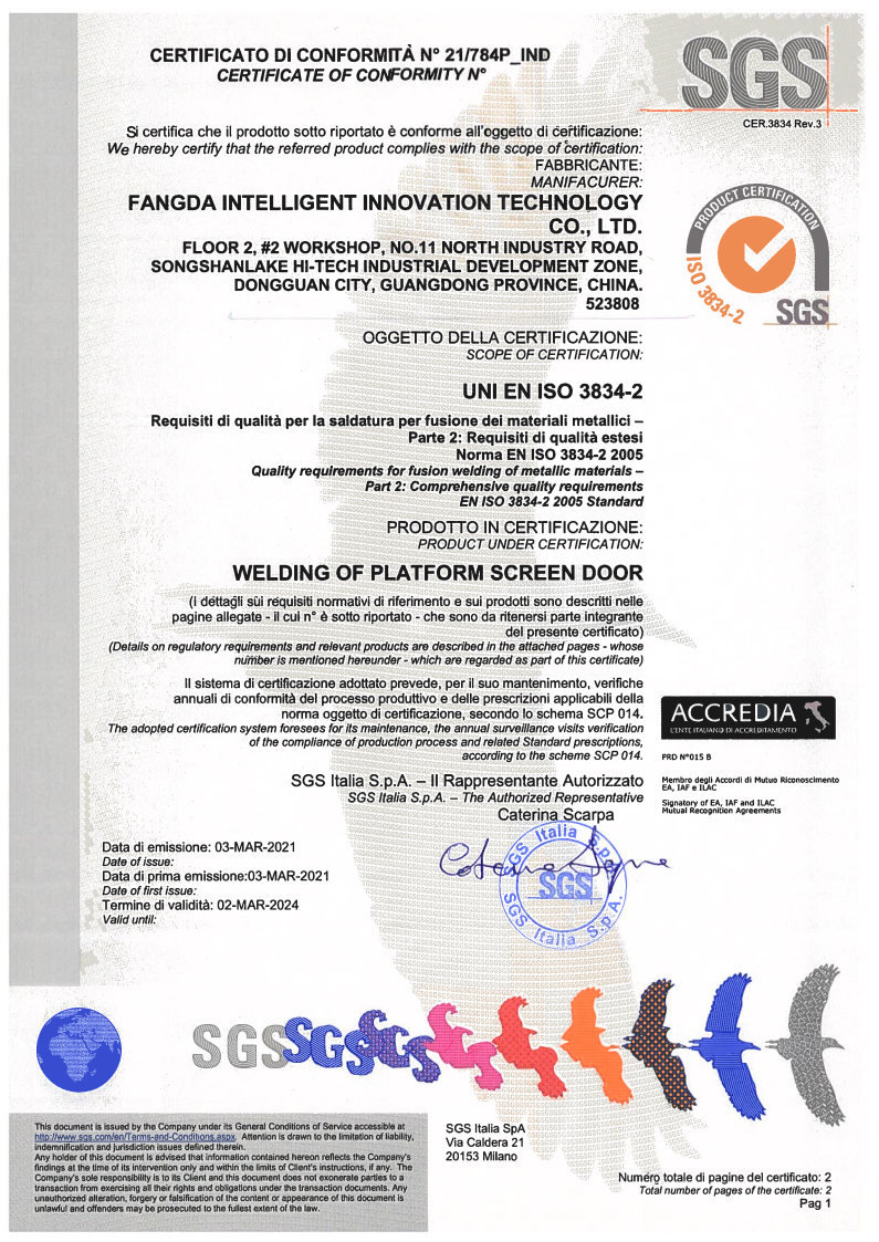 Fangda Innotech Co., Ltd., founded in 2003, is a wholly-owned subsidiary of Fangda Group. It is among the first batch of national high-tech enterprises in China involved in the R&D, design, manufacture, installation, and service of rail transit screen door systems. It was the principal contributor to the drafting of the first industry standard and national product standard for platform screen door (PSD) systems in China. The company is also a world-renowned manufacturer and service provider of rail transit screen door systems.